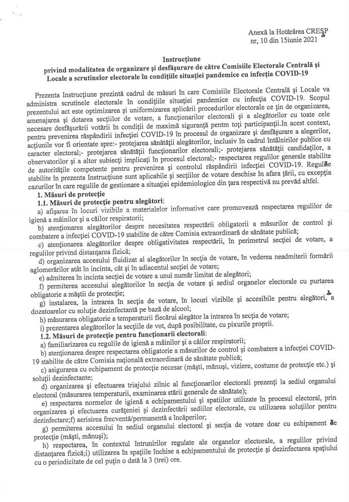 Totodată, potrivit hotărârii, în ziua alegerilor, alegătorii vor veni, după posibilitate cu pixurile propria, în vederea aplicării semnăturii în lista electorală.