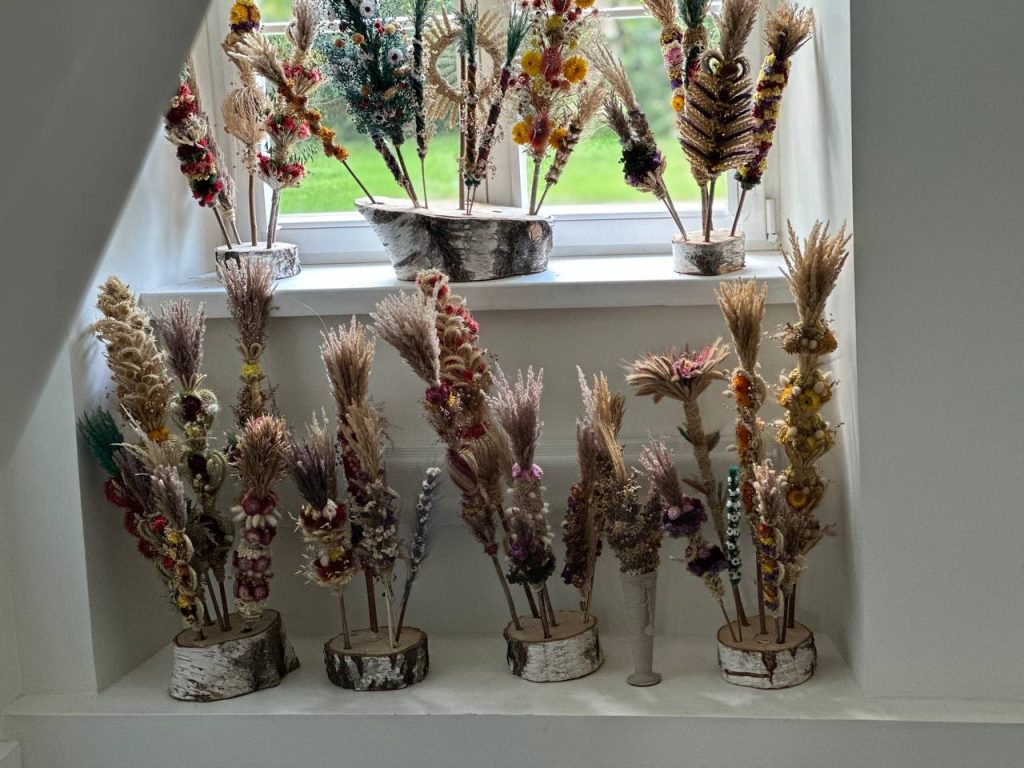 Irina WASILEVSKA, directoare, Centrul de Meșteșuguri și Cultură, Maišiagala:”O săptămâna înainte de Paște, Isus este salutat peste tot cu bucurie și cu asemenea ”Palmieri”. Palmierii noștri sunt făcuți din plantele pe care le adunăm pe câmpurile noastre. Ele sunt colorate cu vopsele natural preparate din mușchi, coajă de stejar, culoarea albastră o obținem din albăstrele. Apoi fiecare îmbină plantele și decorează palmierii după bunul său plac. De cele mai deseori este folosit inul. Pe la noi se spune , spun ei, aduce pace, sănătate, bucurie, căldură și aproape peste tot punem acest In. Se spune chiar că e bine să-l avem acasă.”