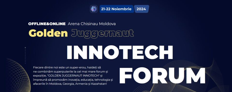 Chișinău va găzdui, în perioada 21-22 noiembrie 2024, primul forum dedicat inovațiilor și dezvoltării tehnologice la scară largă – Golden Juggernaut InnoTech Forum 2024. Organizat sub egida Ministerului Educației și Cercetării al Republicii Moldova de către Asociația pentru Susținerea Inovațiilor și Dezvoltării Durabile „Impuls” și Agenția Națională pentru Cercetare și Dezvoltare, acest eveniment își propune să reunească lideri naționali și internaționali din diverse domenii, specialiști de top și reprezentanți ai companiilor de tehnologie pentru a discuta despre direcțiile și provocările tehnologiei moderne.
